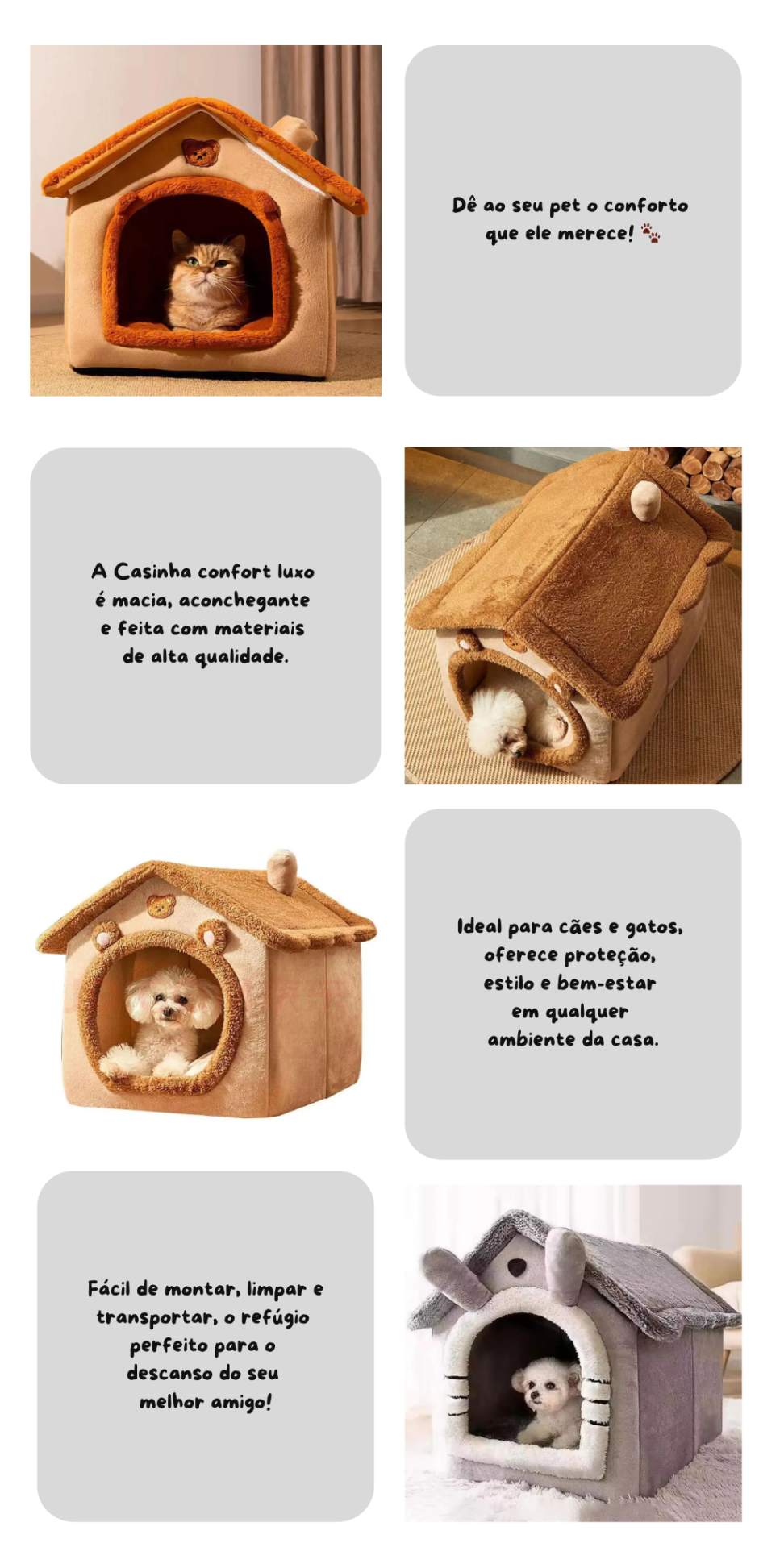 A Casinha Confort Luxo VEX PET é feita com tecido macio, estrutura reforçada e design encantador em formato de casinha. Ideal para cães e gatos de pequeno porte, proporciona aconchego, segurança e estilo em qualquer ambiente da sua casa.